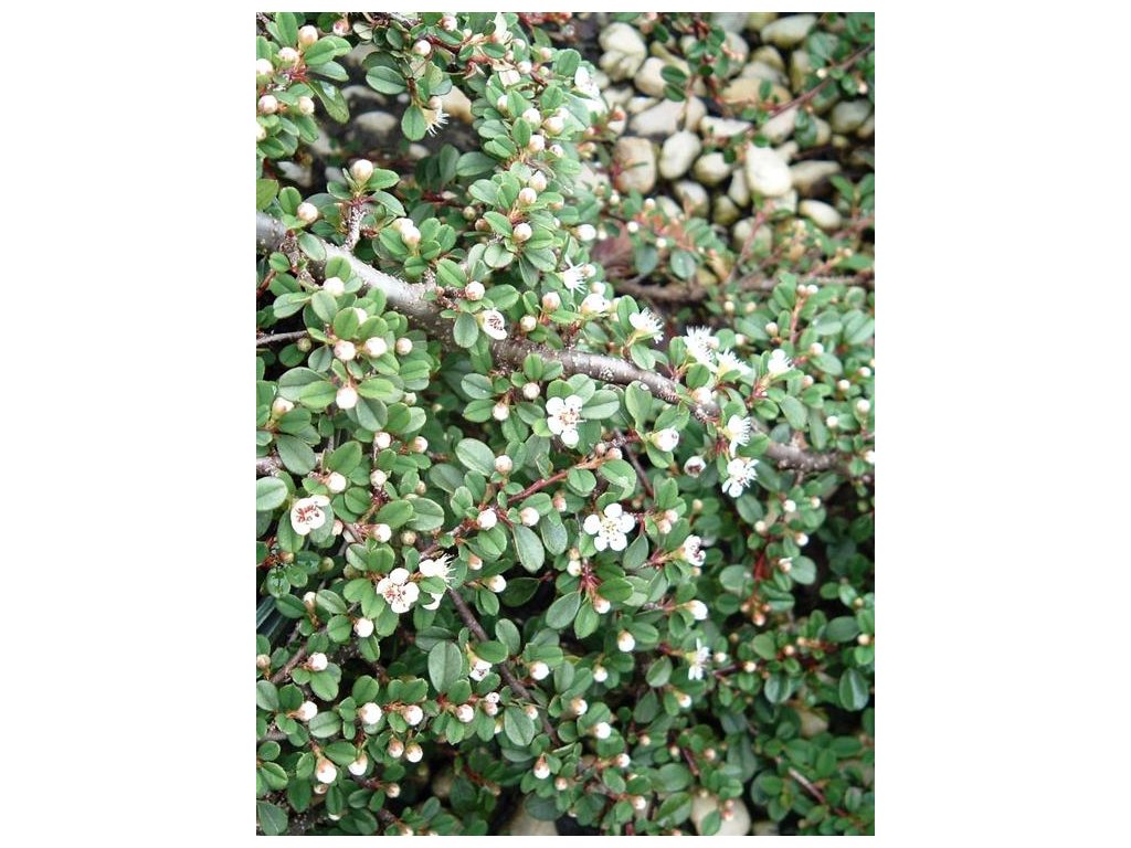 Jedná se o velmi půdopokryvný a stálezelený skalník vhodný k rychlému zapojení - např. pokrytí svahů a plošným výsadbám. Skalník je plně odolný na slunci i v polostínu, výšky kolem 20 cm. Květy má bílé a na podzim krásné červené plody. Je charakteristický velmi bujným růstem, takže požadované místo velmi rychle pokryje. Pokud je roubován na kmínku a bude krásnou soliterou u terasy nebo ve Vaši předzahrádce.