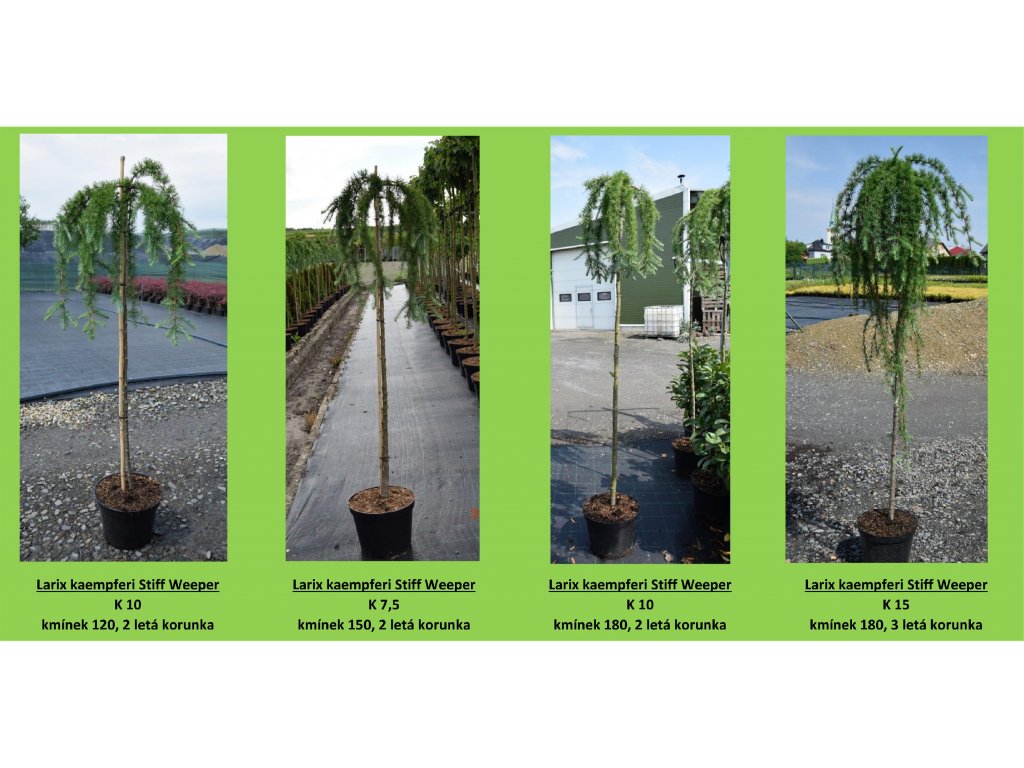 Modřín je převislého vzrůstu. Výška stromu se odvíjí od výšky roubování na kmínek. Můžete tak v dospělosti mít exempláře vysoké 2 nebo i několik metrů. Vždy se jedná o nádherné solitery, které budou ozdobou vaší skalky nebo předzahrádky. Modříny mají rády slunné stanoviště, jinak jsou plně odolné a nenáročné.