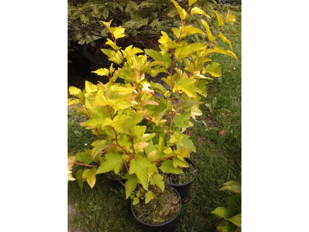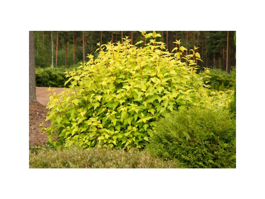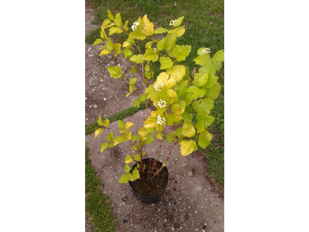 Tento keř je vysoký 1,5 - 2 metry. Pyšní se krásnými bílými květy a žlutými velkými listy. Vhodný je zejména do keřových skupin, kde je výrazný svou svěží barvou. Keř je plně odolný, má rád slunné i stinné stanoviště a snese i jílovitou zeminu. Na plném slunci se Vám ale lépe vybarví.